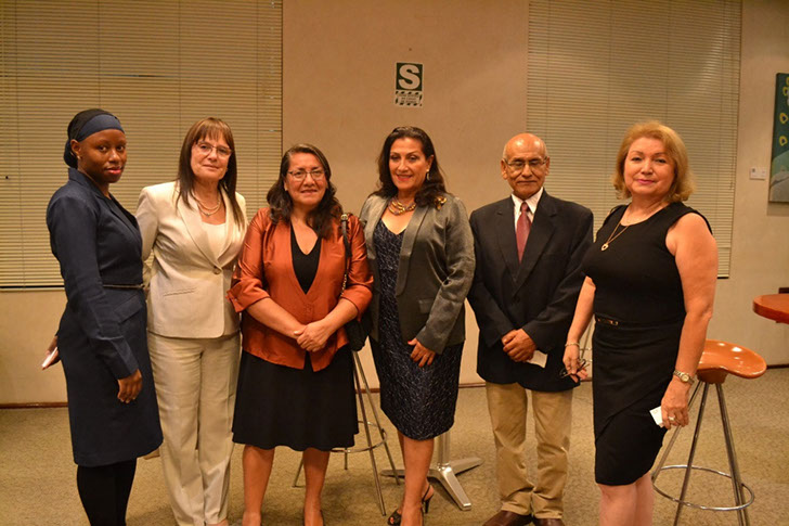 Cóctel de Negocios Perú-Sudáfrica. En la foto: Palesa Makoti, Especialista de Impuestos de Anglo American Quellaveco S.A., María Anderson Directora de la Carrera de Negocios Internacionales de la Universidad de Lima; Celfia Obregón, Directora Ejecutiva de CITE-PAPA/ADERS PERU; Isabel Arias, Presidenta del Directorio de San Ignacio de Morococha; Hermengildo Huaquisto, Director de investigación Desarrollo e Innovación de CITE-PAPA/ADERS PERU e Itala Piaggio, Gerente General de SAPCHAM. Club Empresarial – Marzo 18, 2019.