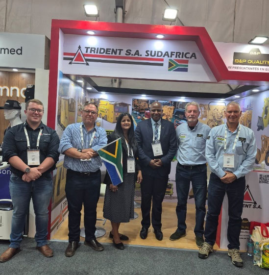 S.E. George Monyemangene, Embajador de Sudáfrica en Chile, y la Sra. Kerosha Ramjettan, Primera Secretaria de la Embajada de Sudáfrica en Chile, en el stand de TRIDENT S.A.
